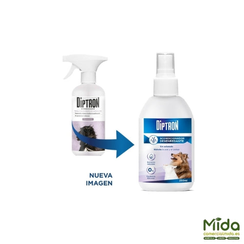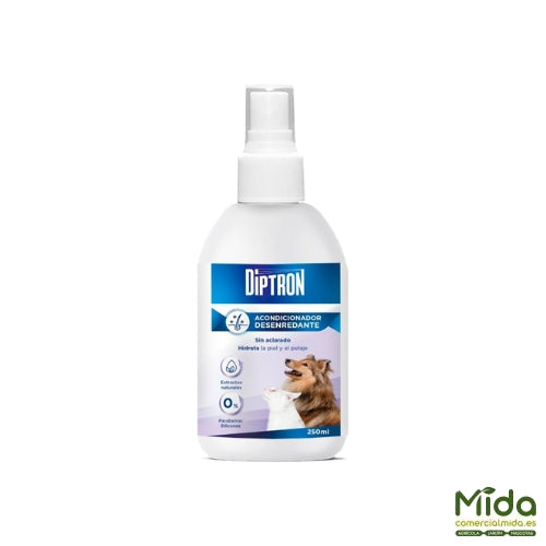 Spray desenredante Diptron para el cuidado de mascotas.