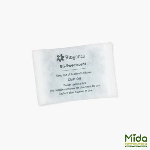 BIOGENTS BG-Sweetscent es un atrayente natural para trampas de succión que imita el olor de la piel humana mediante una fórmula patentada a base de ácido láctico. Está disponible en dos presentaciones: Individual (1 sobre) con duración hasta 2 meses, y Pack x3 (3 sobres) que cubre ≈6 meses de temporada. El dispensador permeable libera el aroma de forma continua y estable, manteniendo altas tasas de captura sin insecticidas. Es compatible con BG-Mosquitaire (+/− CO₂), BG-Home y otras trampas orientadas a mosquitos, especialmente el mosquito tigre.