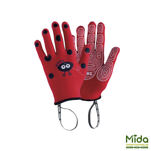 The children's gloves by Rostaing are specially designed for the little ones in the house who want to become gardening apprentices. Anabel is a happy red ladybug that will catch the attention of girls and boys. These gloves are an essential piece of clothing to take care of your hands when handling plants, soil and fertilizer and guarantee protection against possible scratches and accumulation of dirt. These mittens are designed with polyamide and latex coating on the palms, to protect the hands from moisture and cold. Offers type 1 protection against minor hazards and keeps hands warm and dry at all times. They have a strap so that the children can hang the gloves from their hands and thus not lose them and they are seam free , to promote comfort and avoid marks or squeezes.