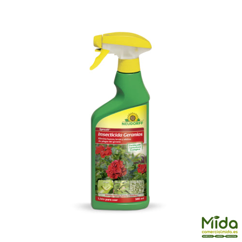 Insecticida Geranios RTU Spruzit, el mejor insecticida-acaricida listo para usar para geranios y otras plantas ornamentales de Neudorff.