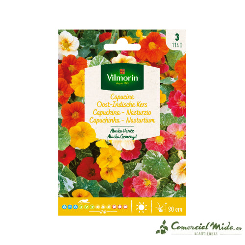 Las mejores semillas de Flores Enanas de Vilmorin para cultivar Capuchina Alaska variada.