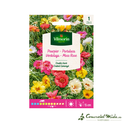 La Verdolaga Doble Variada de Vilmorin es una planta anual rastrera con una vegetación densa y vigorosa, ideal para cubrir espacios con flores dobles de vivos colores que van del blanco al violeta. Extremadamente resistente al calor y la sequía, esta variedad se adapta incluso a suelos pobres y secos, haciendo de ella una opción ideal para jardineros con climas cálidos y exigentes.